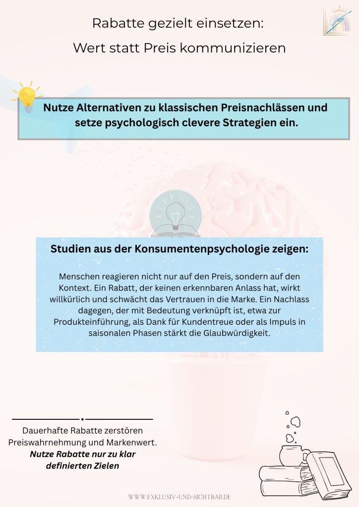 Eine starke Rabattstrategie beginnt deshalb nicht beim Nachlass, sondern bei der Wertvermittlung. Nur wer klar kommuniziert, warum etwas seinen Preis verdient, kann mit gezielten Aktionen punkten, ohne an Glaubwürdigkeit zu verlieren.